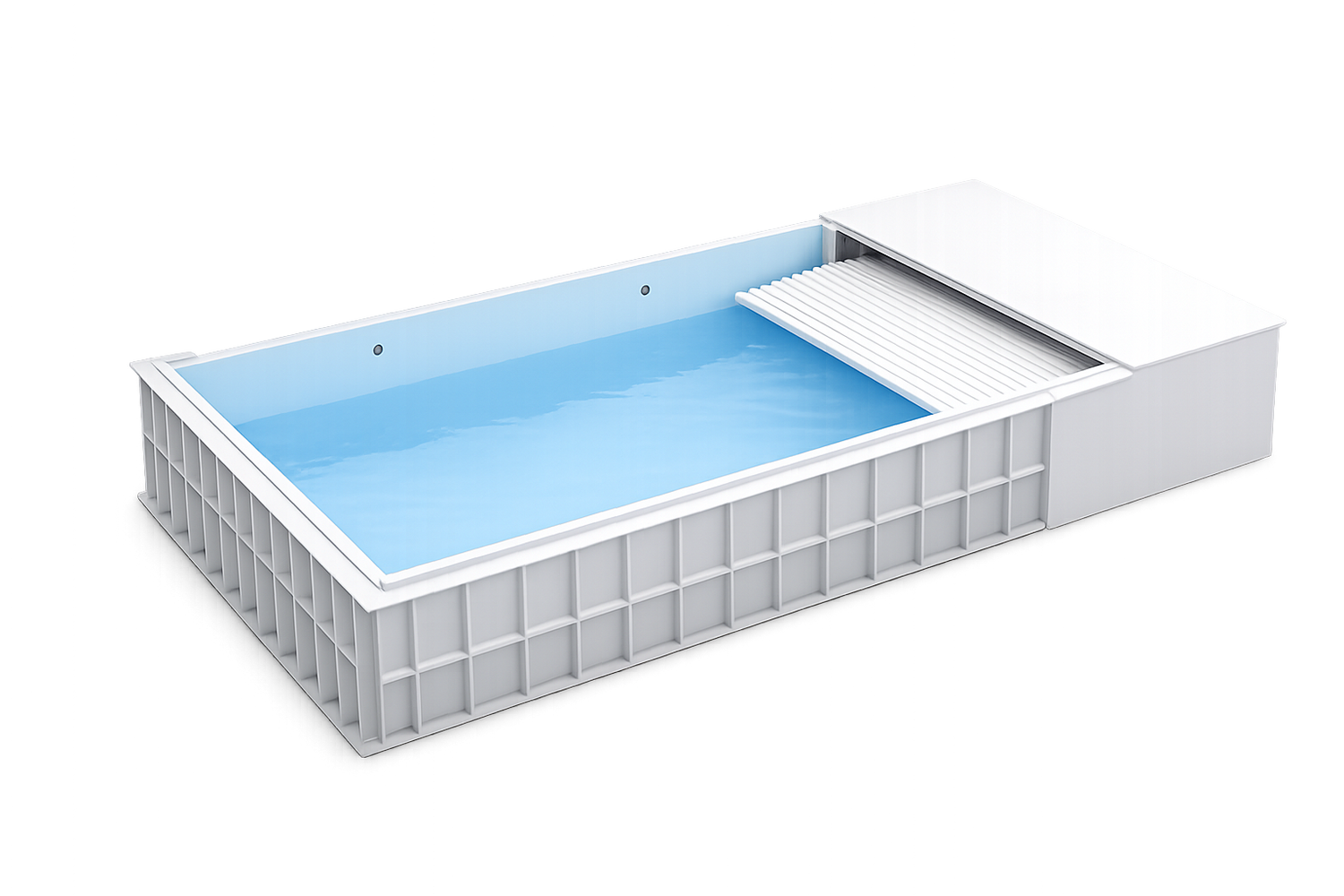 Das hochwertige Polypropylen überzeugt durch seine extreme Langlebigkeit, Formstabilität und Widerstandsfähigkeit gegenüber Chlor, Salzwasser und UV-Strahlung. Die glatte, porenfreie Oberfläche ist besonders hygienisch, pflegeleicht und dauerhaft farbecht. Treppen, Skimmer, Einlaufdüsen und weitere Einbauteile werden nahtlos integriert und bilden eine klare, reduzierte Linienführung ohne sichtbare Übergänge.