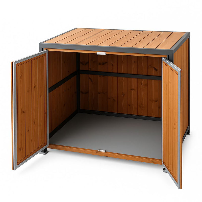 Die Technikbox Premium vereint hochwertiges Design, robuste Materialien und eine durchdachte Funktionalität – ideal für die sichere und optisch ansprechende Unterbringung Ihrer Pooltechnik oder Gartenutensilien.